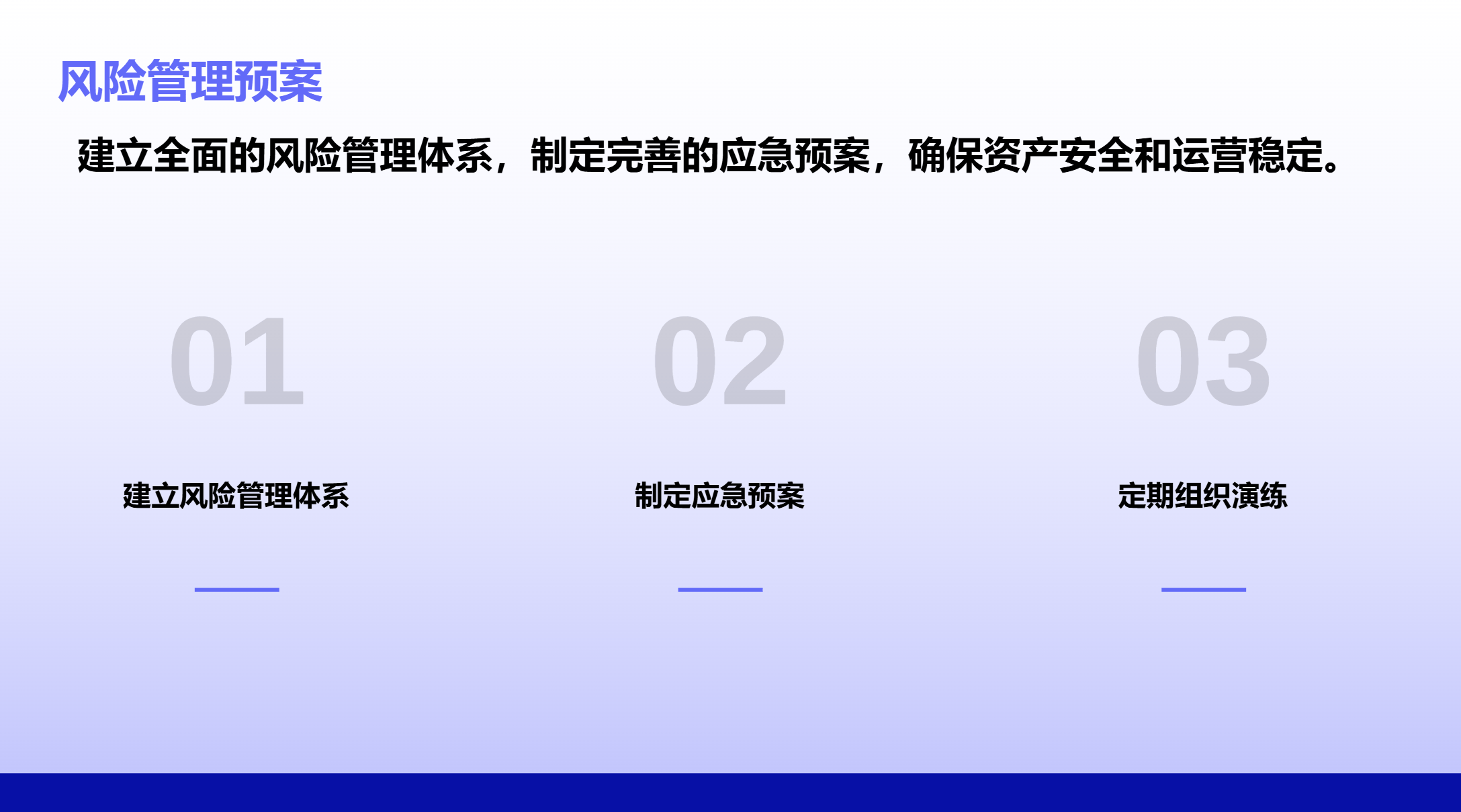 建立完善的风险管理体系,全面识别写字楼运营过程中的各类风险,包括市场风险、运营风险、财务风险、法律风险、安全风险等,制定相应的风险防控措施。加强风险监测和预警,通过数据分析及时发现风险隐患,提前采取防控措施,降低风险损失。例如,针对市场风险,加强市场监测,及时调整招商策略和租金水平;针对运营风险,加强设备维护和服务质量管控,避免运营中断;针对安全风险,加强安全管理,定期开展安全检查和应急演练。同时,制定完善的应急预案,针对火灾、设备故障、突发公共卫生事件等突发事件,明确应急处置流程、责任分工和应对措施,确保突发事件能够得到及时、有效处置,保障租户生命财产安全和写字楼正常运营。